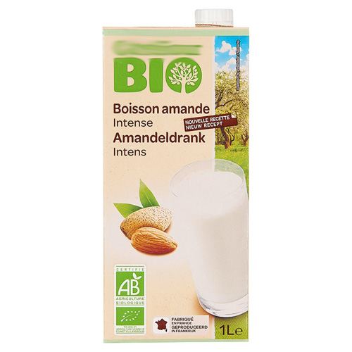 En Le reportage montrait notamment la différence entre un lait d'amande Bio et artisanale (fait maison) et leurs versions industrielles, pourtant certifiées Bio. Première constatation, le produit est Bio, le label le prouve, mais il n'a rien de bon. Il contient du sucre (soit 62gr par litre, environ 12-13 carreaux de sucres) de plus lorsqu'on fait son propre lait d'amande on compte 15 à 20% d'amande, si on veut un peu de gout et de fibres, les versions industrielles en ont environ 5%, voir pour l’exemple ci-dessous 7%, mais dans ce cas ils l'ont appelé "Intense" ... En gros on vous vend de l'eau et du sucre, au prix du Bio, intéressant (mais pas pour vous...)